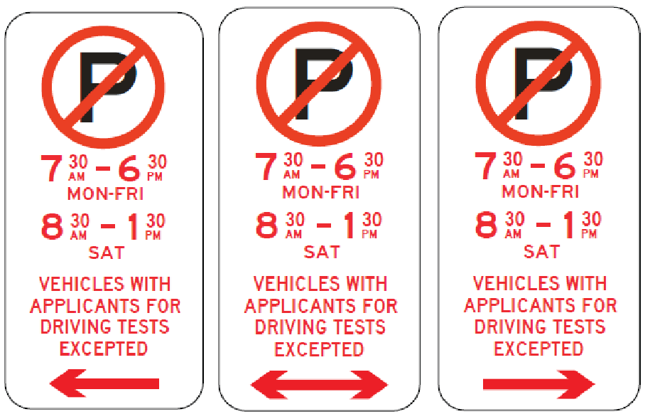 R5-41-2n - No parking (symbolic) (with times) Vehicles With Applicants For Driving Tests Excepted