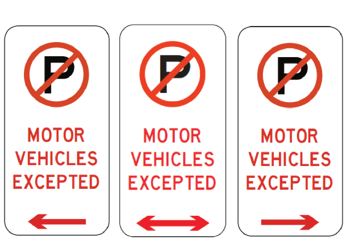 R5-41-4n No Parking (Symbolic) Motor Vehicles Excepted