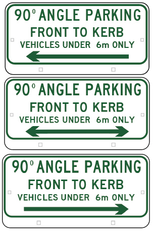 R5-501n - Angle Parking (Front to Curb) (Vehicles under 6m Only) (L, LR & R Arrows)