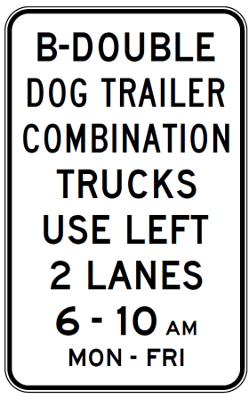 R6-245n - B-Double Dog Trailer Combination Trucks Use Left 2 Lanes (6am - 10am) Mon-Fri