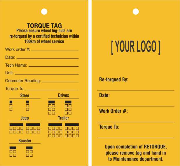 RE-TORQUE TAG PACK OF 50