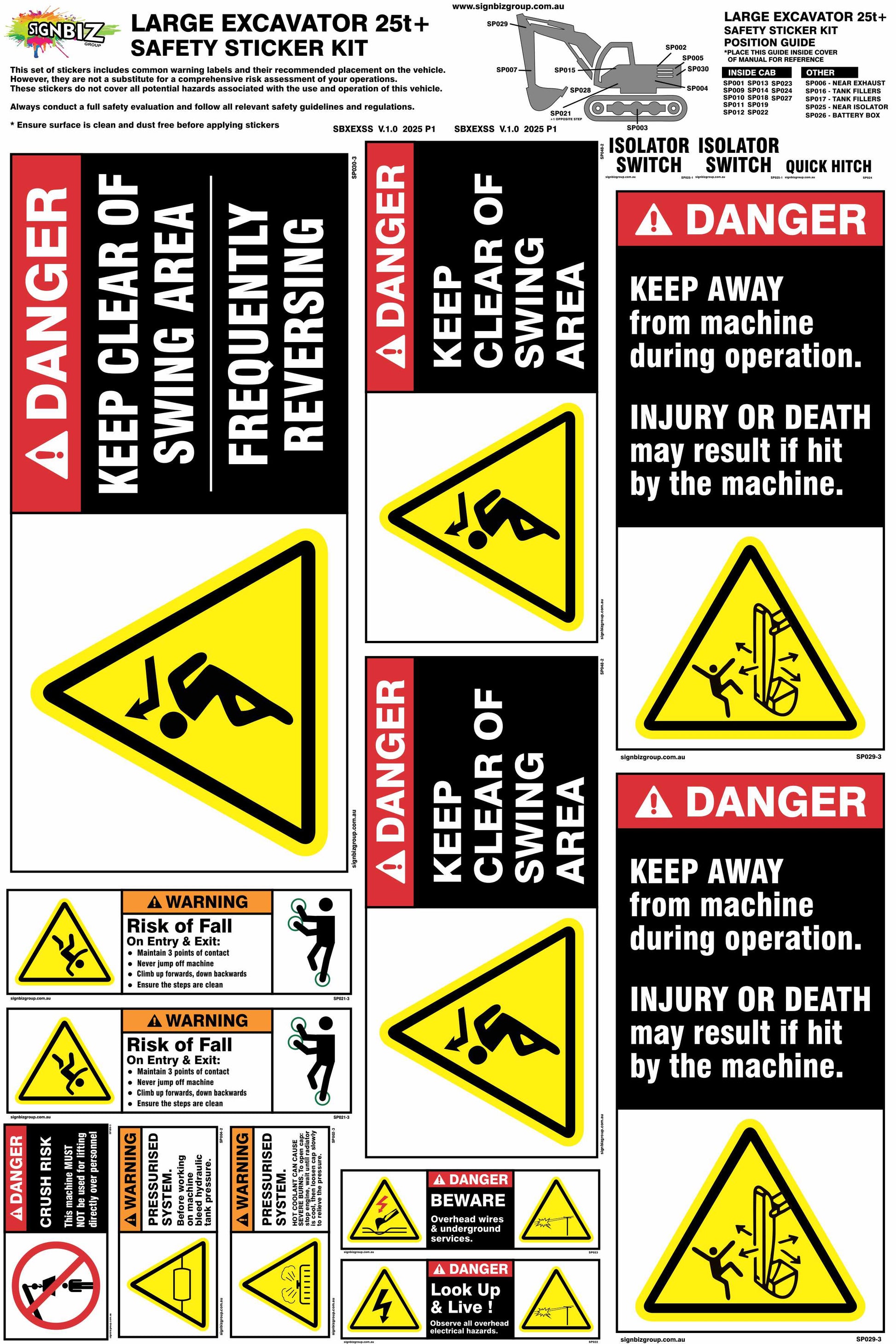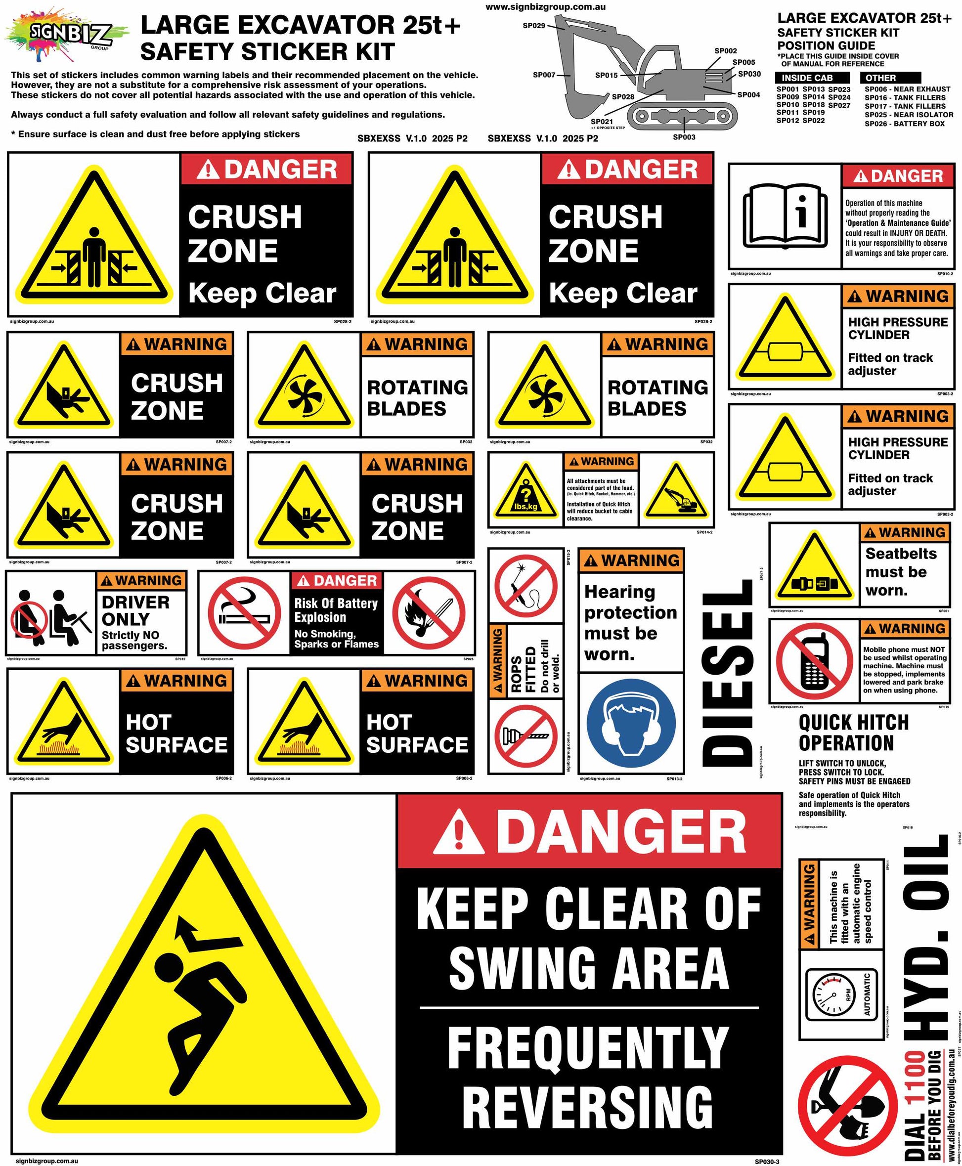 Safety Sticker Sheet for LRG Hydaulic Excavator (25t+) 2 pages