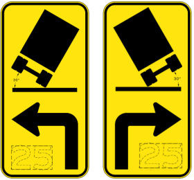 W1-8-3 Tilting Truck (Symbolic) with Turn (W1-1 Symbolic) & Speed (Left or Right)