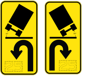 W1-8-5 Tilting Truck (Symbolic) with Hairpin Bend (W1-7 Symbolic) & Speed (Left or Right)
