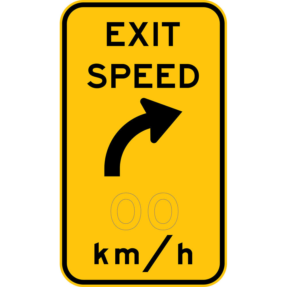 W1-9-2 Exit Speed x km/hr with curve symbol (L or R)