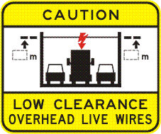 W3-205-2n - Caution (Car Truck Car Symbolic) Low Clearance - Overhead Live Wires