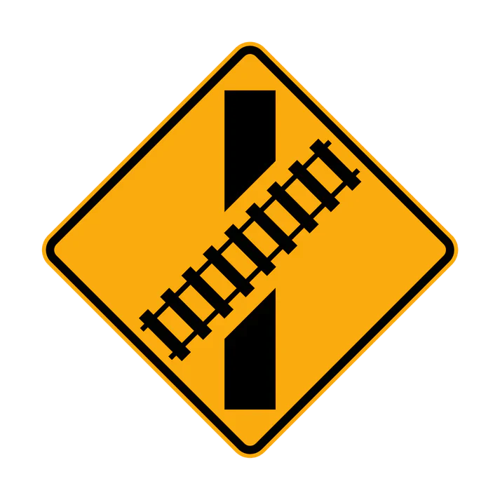 W7-9(L) - Railway Crossing Ahead Diagrammatic - Oblique Crossing (L illustrated)